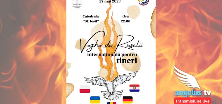 12.05.2023, București (Catholica) - Sâmbătă, 27 mai 2023, în ajunul Sărbătorii Rusaliilor, Centrul Diecezan pentru Pastorația Tineretului (CDPT), în colaborare cu grupul tinerilor de la parohia Catedrala Sfântul Iosif, organizează și propune tinerilor și lucrătorilor pastorali de tineret din București o veghe de rugăciune internațională. Evenimentul va avea loc în Catedrala „Sfântul Iosif”, în intervalul orar 22.00-23.00, și va fi transmis live de Angelus TV.
