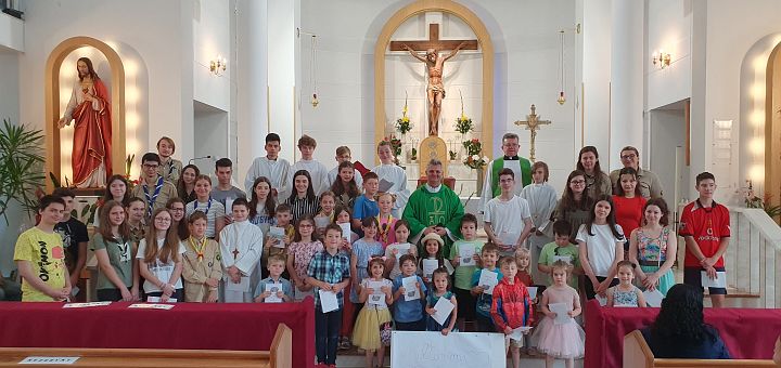 12.06.2023, București (Catholica) - Duminică, 11 iunie 2023, Liturghia de la ora 9:00 din parohia Adormirea Maicii Domnului din București a fost o Liturghie plină de recunoștință, pentru că am împărtășit bucuria și mulțumirea alături de copii și tineri pentru anul pastoral ce tocmai s-a încheiat. Copii de la grupul de pregătire pentru Mir, tineri ai parohiei, cercetași, ne-am unit cu toții indiferent de grupul de care aparținem.