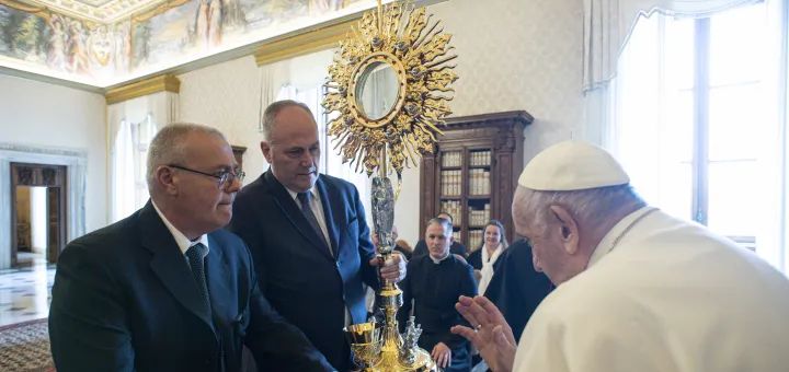 20.06.2023, Vatican (Catholica) - Vorbind luni, 19 iunie, în fața membrilor comitetului episcopal american pentru Congresul Euharistic Național, Papa Francisc a spus că acest congres „marchează un moment semnificativ pentru viața Bisericii din Statele Unite”. Sfântul Părinte a binecuvântat, de asemenea, un ostensoriu de mari dimensiuni care va fi folosit în timpul Congresului Euharistic Național. A lăudat „eforturile comitetului de a contribui la o renaștere a credinței și a iubirii față de Sfânta Euharistie”, pe care a numit-o „izvorul și culmea vieții creștine”. „Euharistia este răspunsul lui Dumnezeu la cea mai profundă foame a inimii umane”, a spus el. „Foamea de viață autentică, pentru că în Euharistie Cristos însuși este cu adevărat în mijlocul nostru, pentru a ne hrăni, consola și susține pe drumul nostru.”