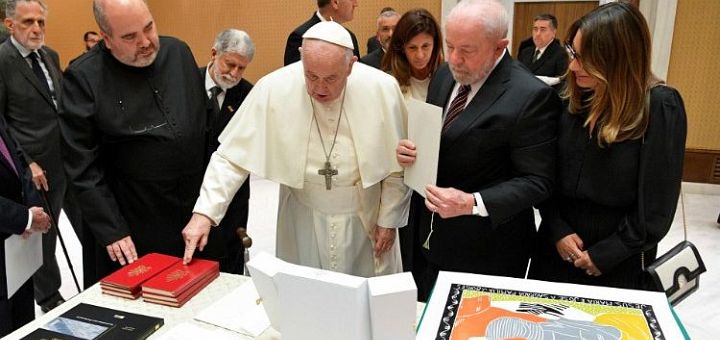 23.06.2023, Vatican (Catholica) - Președintele Braziliei, Luiz Inacio Lula da Silva, s-a întâlnit cu Papa Francisc în Vatican în ziua de miercuri, 21 iunie 2023, audiența desfășurându-se într-o atmosferă caldă și cordială, cei doi cunoscându-se de mulți ani. Audiența a marcat prima vizită la Vatican a președintelui Lula de când a fost reales președinte în noiembrie 2022, pentru a conduce țara pentru un al treilea mandat. După o întrevedere cu președintele Italiei, Sergio Mattarella, președintele brazilian a ajuns la Vatican, unde s-a întâlnit cu Papa Francisc în mica sală de întâlniri de lângă Aula Paul al VI-lea, unde au petrecut aproximativ 45 de minute în discuții cu ușile închise.