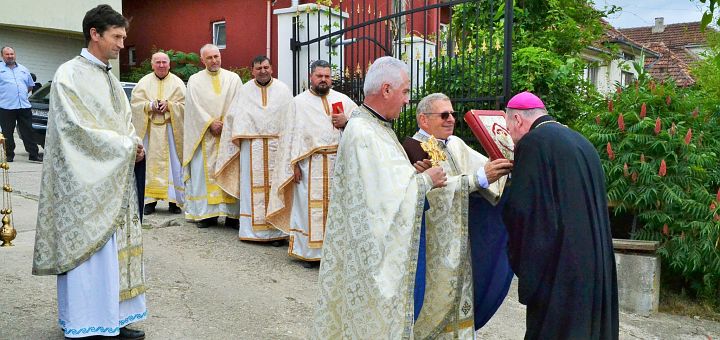 02.07.2023, Baia Mare (Catholica) - Numeroși credincioși, persoane consacrate și preoți s-au reunit în rugăciune la mănăstirea baziliană din Prilog joi, 29 iunie 2023, cu ocazia hramului acesteia. Programul hramului a început miercuri, 28 iunie, cu o seară de rugăciune, iar în ziua sărbătorii Sfinților Apostoli Petru și Pavel, acesta a cuprins Acatistul Sfinților Apostoli Petru și Pavel și Sfânta Liturghie celebrată de Preasfinția Sa Vasile Bizău, Episcop de Maramureș, împreună cu ierom. Ermil – Alexandru Jurja, Protoegumen OSBM la Mănăstirea Sf. Cruce-Mintiu Gherlii, pr. Laurian Daboc, Superior Provincial OSBM, părintele protopop Iacob Feier și un sobor de preoți din Eparhie, precum și din alte Eparhii.