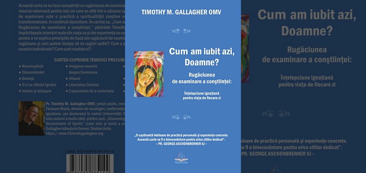 10.08.2023, Iași (Catholica) - La Editura Sapientia din Iași a apărut de curând cartea: „Cum am iubit azi, Doamne? Rugăciunea de examinare a conștiinței: înțelepciune ignațiană pentru viața de fiecare zi”, scrisă de pr. Timothy M. Gallagher OMV și tradusă în limba română de Ioana Barcan. Cartea apare în colecția „Spiritualitate”, în formatul 14×20, are 222 pagini și poate fi procurată de la Librăria Sapientia (www.librariasapientia.ro), precum și de la celelalte librării catolice din țară la prețul de 20 lei. Cităm din prefața semnată de pr. George Aschenbrenner SJ.
