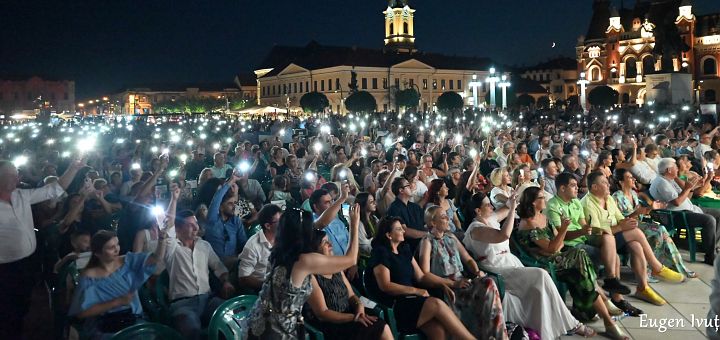 23.08.2023, Oradea (Catholica) - O seară magică de vară cu un public orădean care a ocupat în întregime Piața Unirii din Oradea pentru a-și încărca sufletul cu interpretările muzicale ale unor artiști deosebiți din țară și străinătate, aflați în compania orchestrei Filarmonicii de Stat Oradea: așa a fost a treia ediție a concertului „Pop Simfonic la Catedrală”, desfășurat duminică, 20 august 2023. În public, printre cei aproape 4.000 de oameni din piață s-au aflat personalități locale și reprezentanți ai instituțiilor locale orădene, printre care: primarul orașului Oradea, Florin Birta, viceprimarul Antonia Nica, Excelența sa George Bologan, ambasadorul României în Regatul Spaniei, și PS Virgil Bercea, episcop greco-catolic de Oradea, așezat în mijlocul orădenilor, al tinerilor și persoanelor consacrate venite la concert.