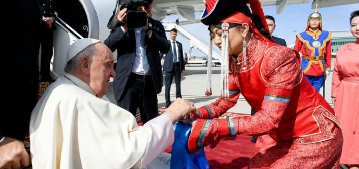 Națiunea din Asia de est pe care Papa a ales să o viziteze în cadrul celei de-a 43-a călătorii apostolice în străinătate este a doua cea mai mare țară fără ieșire la mare din lume (după Kazahstan). Populația sa minusculă, tradițional nomadă, numără mai puțin de 3,5 milioane de oameni; sub 2% sunt creștini. După 70 de ani de regim comunist, ca națiune satelit al URSS, Mongolia a trecut printr-o revoluție pașnică în 1990 și a instaurat o democrație pluripartidistă. A adoptat o nouă Constituție care garantează libertatea religioasă. Atunci, misionarii catolici care fuseseră exilați în anii comunismului s-au întors în țară cu sarcina de a reconstrui Biserica de la zero. Astăzi sunt 8 parohii și aproximativ 1.500 de catolici botezați. Dar ei sunt bineveniți, integrați și apreciați de autorități și de populație și datorită numeroaselor programe sociale, de asistență medicală și educaționale pe care le desfășoară pentru săraci, bătrâni, persoane cu dizabilități și abandonate. Tânăra Biserică este condusă de cel mai tânăr Cardinal din Colegiul Cardinalilor, Giorgio Marengo, pe care Papa Francisc l-a ridicat la rangul de Cardinal în timpul Consistoriului din august 2022.