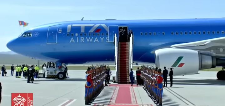 04.09.2023, Ulaanbaatar (Catholica) - Papa Francisc a plecat din Ulaanbaatar la bordul avionului papal cu destinația Roma la ora 6:03 AM (GMT+8), la finalul călătoriei sale apostolice în Mongolia. El urmează să aterizeze pe aeroportul Fiumicino din Roma în jurul orei 17.00 (GMT+2). În ultima sa zi în Mongolia, Pontiful a celebrat Sfânta Liturghie în privat la Prefectura apostolică și și-a exprimat recunoștința față de personal și față de Cardinalul Giorgio Marengo, prefectul apostolic de Ulaanbaatar, care l-a însoțit pe Sfântul Părinte pe tot parcursul vizitei sale. În semn de apreciere, i-a dăruit Cardinalului Marengo un potir de aur. Iar ca semn al grijii sale părintești, a dăruit Prefecturii apostolice o statuie a Sfântului Iosif.
