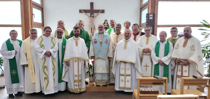 17.10.2023, Lugoj (Catholica) - La inițiativa și cu binecuvântarea Excelenței Sale Iosif Csaba Pál, Episcop romano-catolic de Timișoara, în perioada 9-13 octombrie a.c, la mănăstirea Surorilor Franciscane din Caransebeș au avut loc exerciții spirituale pentru preoții Diecezei romano-catolice de Timișoara de limbă română. Ca predicator al acestora a fost invitat PS Ioan, Episcop greco-catolic de Lugoj. Cu binecuvântarea ambilor ierarhi, au participat și majoritatea preoților greco-catolici celibatari din Eparhia de Lugoj.