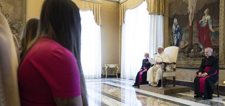 30.10.2023, Vatican (Catholica) - Papa Francisc a încurajat luni un grup de femei care au scăpat de organizațiile criminale din Italia să continue să lupte în ciuda fricii și să știe că nu sunt singure. „Voi, dragi femei, v-ați născut și ați crescut în contexte corupte de criminalitatea mafiotă și ați decis să ieșiți din ele. Binecuvântez această alegere a voastră și vă încurajez să mergeți înainte”, a spus el în timpul unei audiențe în Palatul Apostolic din Vatican, în dimineața zilei de 30 octombrie. „Îmi imaginez că există momente de teamă, de nedumerire; acest lucru este normal. În aceste momente gândiți-vă la Domnul Isus care merge alături de voi”, a spus el. „Nu sunteți singuri; continuați să luptați”.