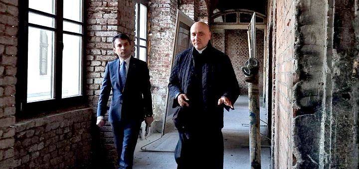 03.11.2023, Oradea (Catholica) - Secretarul de Stat pentru Culte, Excelența Sa Ciprian Olinici, a vizitat joi, 2 noiembrie a.c., Palatul Episcopal Greco-Catolic din Oradea. Însoțit de Preasfinția Sa Virgil Bercea, episcopul Eparhiei de Oradea, ministrul a ținut să cunoască îndeaproape „rana sângerândă din mijlocul orașului nostru”, cum numește Eparhul de Oradea situația actuală în care se află acest monument istoric, cultural și spiritual de o valoare inestimabilă.