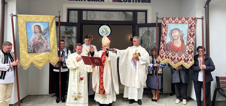 05.11.2023, Iași (Catholica) - Miercuri, 1 noiembrie 2023, în sărbătoarea Tuturor Sfinților, parohia „Trupul și Sângele Domnului” Gherăești s-a bucurat de prezența PS Petru Sescu, Episcop auxiliar de Iași și a Episcopului emerit Petru Gherghel care, însoțiți de un sobor de preoți, au sfințit capela mortuară închinată Sfintei Fecioare Maria, Maica Milostivirii, de lângă biserică.