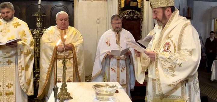 A urmat în Catedrală, după Sfânta Liturghie, slujba de Sfințire Mare a Apei, săvârșită de Preasfinția Sa Claudiu și de toți celebranții. După înălțătoarea rugăciune și binecuvântarea cu apă sfințită a credincioșilor de către Ierarh, toți cei prezenți s-au închinat în fața Sfântului Altar, unde era așezată icoana Botezului Domnului, și apoi au primit, fiecare, apă sfințită spre binecuvântarea caselor și a apropiaților, răspândind, prin picăturile încărcate cu har și lumina spirituală izvorâtă în suflete prin rugăciune, bucurie și putere vindecătoare, reparatoare, a lui Dumnezeu coborât între oameni.