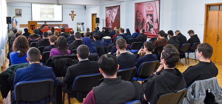 În final, auditoriul a fost invitat să pătrundă în locuința lui Cristos descoperită tuturor prin Sfânta Scriptură, exercitând actul de cunoaștere și recunoaștere a Creatorului prin creație din dubla perspectivă a demnității de fii adoptivi și de prieteni: „celor care l-au primit, celor care cred în numele Lui, le-a dat puterea de a deveni copii ai lui Dumnezeu” (In 1,12). „V-am numit pe voi prieteni, pentru că toate câte le-am auzit de la Tatăl vi le-am făcut cunoscute” (In 15,15). Pr. Virgil Blaj, rector formativ al Institutului, în calitate de moderator al conferinței biblice, a adresat atât cuvântul inaugural cât și cel final, evidențiind importanța reconstruirii din interior, prin cunoașterea și asimilarea învățăturii creștine, expresie a dorinței de colaborare la planul divin. (Eugenia Tatiana Bulancea pentru OFMConv.ro)