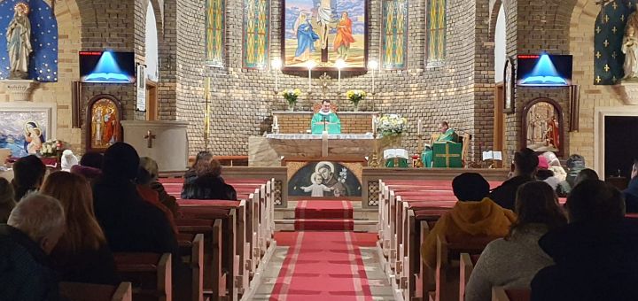 La Sfânta Liturghie de la ora 18.00 a fost prezent pr. Emil Moraru care a prezidat și ținut cuvântul de învățătură. La predică, părintele a amintit despre perioada când cu greu se putea obține o Biblie, iar astăzi avem atâtea posibilități să citim Biblia și nu o citim. A amintit de scriitorul Paul Claudel, care la jumătatea secolului al XX-lea, „ironiza cu privire la respectul pe care catolicii îl arată față de Biblie, ținându-se la distanța cuvenită”. Înainte de binecuvântarea finală, părintele ne-a prezentat broșura publicată la Editura Sapientia, „Să redescoperim duminica. Weekend sau ziua Domnului”. Ne-a vorbit despre ce spune Biblia despre ziua de duminică, amintind de semnificația zilei de Sabat în Vechiul Testament. Sabatul ca zi de odihnă, dar și ziua ce comemorează eliberarea Israelului din Egipt. Este, de asemenea, semn al alianței Israelului cu Domnul. În fine, Sabatul este ziua în care oamenii trebuie să își amintească de Dumnezeu și să îl cinstească.
