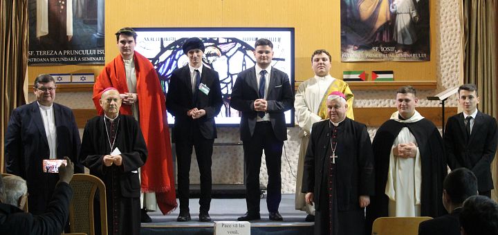 29.01.2024, Iași (Catholica) - În ziua de 28 ianuarie avem comemorarea Sfântului Toma de Aquino. An de an, odată cu această sărbătoare, studenții anului II pregătesc un moment artistic-cultural intitulat Academia tomistă. Și anul acesta ne-am putut bucura de acest eveniment, desfășurat în Aula Magna a Institutului Teologic Romano-Catolic „Sf. Iosif” din Iași. La acest eveniment au participat PS Petru Sescu, Episcopul auxiliar de Iași, PS Petru Gherghel, Episcop emerit, rectorul seminarului, pr. Ștefan Lupu, preoții profesori ai institutului împreună cu seminariștii. Academia Tomistă din anul acesta a fost intitulată: Omul între bine și rău. Război și pace. Tematica aleasă de către studenți dorește să sublinieze cele două probleme centrale ale existenței umane.