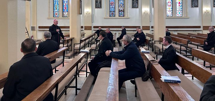 07.03.2024, București (Catholica) - Miercuri, 6 martie a.c., cu începere de la ora 11.00, un număr de aproximativ 40 de preoți care activează în parohiile din capitală și împrejurimi, s-au adunat, la invitația Pr. Emil Diac, parohul Parohiei Sfânta Fecioară Maria, Regina Sfântului Rozariu din Popești-Leordeni, pentru ora de rugăciune lunară, care îi adună pe păstorii sufletești pentru întâlnirea cu Bunul Păstor în rugăciune sau momente de formare permanentă, precum și pentru un moment de comuniune și prietenie sacerdotală, atât de necesară pentru viața preoțească.