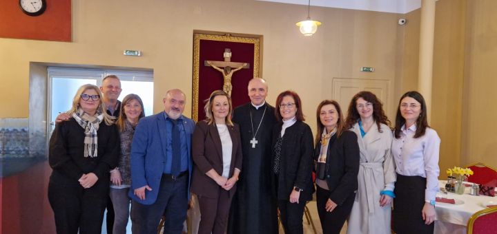 15.03.2024, Oradea (Catholica) - În perioada 10-14 martie a.c., Episcopia Greco-Catolică de Oradea a primit vizita unei delegații de profesori italieni, în cadrul căreia a fost semnată înfrățirea dintre Istituto Comprensivo „Albert Schweitzer” din Termoli (Italia) și Liceul Greco-Catolic „Iuliu Maniu” din Oradea. Parteneriatul dintre școala greco-catolică orădeană și cea italiană este fructul unei colaborări mai vechi între Liceul Greco-Catolic „Iuliu Maniu” și Asociația Italiană „Maestri Cattolici”, sub patronajul Uniunii Mondiale a Profesorilor Catolici (UMECT), dar și a implicării profesorilor orădeni, printre care un rol important l-au avut prof. Ana Popa, psiholog școlar al Liceului Greco-Catolic din Oradea, și pr. Paul Popa, director al Biroului Pastoral EGCO, delegat din partea Episcopiei. Delegația italiană a fost alcătuită din mai mulți profesori de la școala din Termoli, alături de care au fost prezenți președintele Asociației „Maestri Cattolici” din Italia, Esther Flocco, și secretarul general al Uniunii Mondiale a Profesorilor Catolici (UMECT), Giuseppe Desideri.