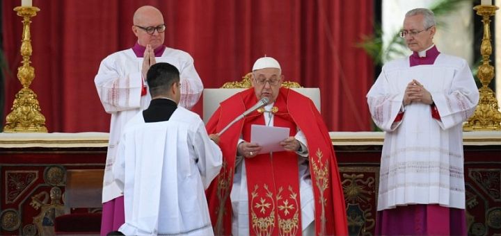 Iubiți frați și surori, Isus a intrat în Ierusalim ca Rege umil și pașnic: să îi deschidem Lui inimile noastre! Numai El ne poate elibera de dușmănie, de ură, de violență, pentru că El este milostivirea și iertarea păcatelor. Să ne rugăm pentru toți frații și surorile care suferă din cauza războiului; în mod special mă gândesc la martirizata Ucraina, unde foarte mulți oameni sunt fără electricitate din cauza atacurilor intense împotriva infrastructurilor care, în afară de a provoca morți și suferințe, comportă riscul unei catastrofe umanitare de dimensiuni și mai ample. Vă rog, să nu uităm martirizata Ucraina! Și să ne gândim la Gaza, care suferă mult, și la atâtea locuri de război.