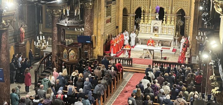 30.03.2024, București (Catholica) - În Vinerea Sfântă, 29 martie 2024, ÎPS Aurel Percă, Arhiepiscop Mitropolit de București, a prezidat celebrarea Pătimirii Domnului în Catedrala Sfântul Iosif. Au concelebrat PS Cornel Damian, Episcop auxiliar de București, ÎPS Ioan Robu, Arhiepiscop Mitropolit emerit de București, și preoții Catedralei. Celebrarea a fost precedată de Calea Sfintei Cruci. „În timp ce parcurgem Drumul Crucii, ne conectăm cu cei de aproape și de departe care, în timpul nostru, parcurg propriul lor drum al Crucii războiului și al foametei, al bolii, al suferinței, al durerii și al singurătății. Și ne rugăm pentru numeroșii oameni ale căror vieți sunt marcate de suferință, de cruci mai mici sau mai mari”, a spus Arhiepiscopul de București la începutul omiliei.