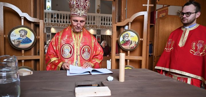 01.04.2024, Oradea (Catholica) - Duminică, 31 martie a.c., în a doua duminică a Postului Mare din acest an, la parohia greco-catolică „Adormirea Maicii Domnului” din localitatea Sâmbăta, jud. Bihor, a fost sfințită Masa noului Altar. Sfințirea Mesei sfinte a fost săvârșită de Preasfinția Sa Virgil Bercea, Episcop greco-catolic de Oradea, înaintea Sfintei Liturghii arhierești celebrată în comunitatea de aici. La consacrare au luat parte pr. Ioan Tătar, protopop de Holod, și pr. Giusepe Ghiurcă, paroh al locului. Evenimentul a adus împreună credincioșii parohiei Sâmbăta, alături de care s-au aflat pr. arhidiacon diacon Grațian Gui și ipod Eugen Ivuț.