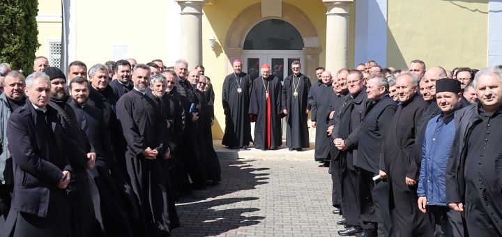 06.04.2024, Blaj (Catholica) - Cu binecuvântarea Preafericitului Părinte Lucian Cardinal Mureșan, marți, 2 aprilie 2024, a fost organizată, la Blaj, o zi de reculegere spirituală pentru preoții din Arhieparhia de Alba Iulia și Făgăraș. La acest moment de reflecție și rugăciune s-au aflat, în comuniune cu preoții prezenți, Preasfinția Sa Cristian Dumitru Crișan, Episcop auxiliar de Alba Iulia și Făgăraș, și Preasfinția Sa Claudiu Lucian Pop, Episcop al Eparhiei de Cluj-Gherla.