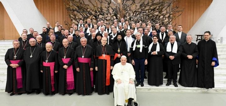 Primindu-i pe pelerini în Aula Paul al VI-lea, după o scurtă întâlnire cu noul președinte al Ungariei, Tamás Sulyok, Papa Francisc, a amintit cum a venit în țara lor în primul rând ca pelerin pentru a se ruga împreună cu ei pentru națiunea lor și pentru Europa, amenințată de spectrul războiului care se profilează din nou în interiorul granițelor ei. „În rugăciune este întotdeauna posibil să găsim forța și determinarea de a urma exemplul Sfinților și Fericiților născuți din poporul vostru, chiar și în contextul istoric actual”, a remarcat el, amintindu-le pelerinilor maghiari că darul păcii „începe în inima fiecăruia dintre noi” și vine „atunci când mă decid să iert, chiar dacă este dificil, iar acest lucru îmi umple inima de bucurie”. Sfântul Părinte a încredințat, așadar, Biserica maghiară mijlocirii Mariei, „Magna Domina Hungarorum”, Sfântului Ștefan, Sfântului Ladislau, Sfintei Elisabeta, Sfântului Emeric , pentru ca aceasta să fie „întărită în ardoarea mărturiei” și în bucuria de a vesti Evanghelia.