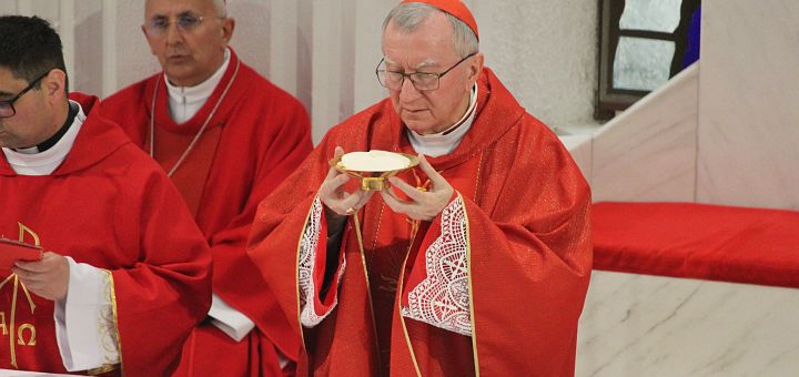 Primul moment s-a desfășurat în Aula Magna a Institutului unde pr. rector Stefan Lupu, împreună cu toți seminariștii și formatorii, l-au întâmpinat pe Cardinalul Parolin. Acesta și-a exprimat bucuria și a adus cu sine salutul Sfântului Părinte. A urmat o prezentare a fiecărui seminar în parte și, apoi, au fost adresate întrebări Cardinalului în ceea ce privește viața seminarială și formarea sacerdotală. Centrul acestui eveniment a fost Sfânta Liturghie Pontificală celebrată de Eminența Sa, împreună cu PS Iosif Păuleț, Episcopul Diecezei de Iași, PS Petru Gherghel, Episcop emerit al Diecezei de Iași, IPS Ioan Robu, Arhiepiscop emerit al Arhidiecezei de București și toți ceilalți profesori și formatori. La omilie Cardinalul Parolin a evidențiat rolul Duhului în viața Bisericii. A făcut referire la parcursul sinodal în care se înscrie Biserica, nefiind o democratizare a Biserici, dar un drum împreună sub călăuzirea Duhului Sfânt. A reliefat rolul Duhului în viața fiecăruia, punând accent pe necesitatea ascultării față de Duhul Sfânt și folosind imaginea focului: Duhul Sfânt este precum focul care ne aprinde și ne luminează pe toți și locuiește în fiecare dintre noi. Duhul Sfânt face Biserica misionară trezind ardoarea vestirii Evangheliei în lume, care, mai mult ca niciodată, are nevoie de acest lucru. La finalul omiliei, Eminența Sa ne-a îndemnat să primim darul Duhului Sfânt pentru a vesti Evanghelia și să ne rugăm unii pentru alții pentru a trăi această dimensiune fundamentală a vieții creștine.