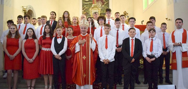 „Dragi tineri, care așteptați să fiți miruiți, știți voi ce săvârșește Duhul Sfânt venind în voi?”, a adresat întrebarea candidaților în cadrul ritualului mirungerii, Episcopul diecezan, la care ei au răspuns: „Știm. Duhul Sfânt vrea să ne sfințească și să ne întărească ca să ne mărturisim credința cu statornicie și ca să putem trăi așa, cum ne învață această credință.” În cadrul Sfintei Liturghii, Excelența Sa Iosif Csaba Pál a invocat prin rugăciunea sa revărsarea Duhului Sfânt asupra tinerilor candidați, care, însoțiți de naș sau nașă, s-au prezentat pentru ungerea pe frunte, cu Sfânta Crismă, însoțită de cuvintele: „Primește pecetea darului Duhului Sfânt”.