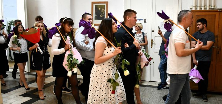 08.06.2024, Timișoara (Catholica) - Pe coridoarele Liceului Teologic Romano-Catolic Gerhardinum, joi, 6 iunie a.c., dimineața pe la ora 9.00, clopoțelul a sunat lung, mult mai lung, decât de obicei. A fost o zi specială, festivă, plină de așteptări și emoții, mai ales pentru elevii claselor a XII-a A și B, cu predare în limbile română și maghiară, pentru care clopoțelul a sunat de rămas-bun. Tinerii absolvenți, purtând pe umeri micul săculeț, care simbolizează acele „merinde” cu care școala îi trimite mai departe pe drum, au intrat pe rând în toate sălile de clasă, luându-și adio de la colegi, de la profesori și de la anii de liceu.
