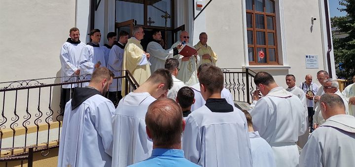 26.06.2024, Galați (Catholica) - Duminică, 23 iunie 2024, în parohia romano-catolică „Nașterea Sfântului Ioan Botezătorul” din Galați, în cadrul Sfintei Liturghii de hram, de la ora 11.00, a avut loc sfințirea Centrului Caritativ „Pâinea Sfântului Anton de Padova” și a capelei mortuare. Sfânta Liturghie a fost prezidată de pr. Damian-Gheorghe Pătrașcu, ministru provincial al Fraților Minori Conventuali din România, concelebrând 13 preoți veniți din Decanatul de Vrancea, oaspeți din împrejurimile orașului Galați, fiind prezenți și frații studenți veniți de la Institutul Franciscan din Roman.