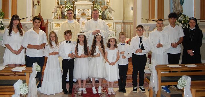 09.07.2024, București (Catholica) - Sâmbătă, 29 iunie 2024, în solemnitatea Sfinților Apostoli Petru și Paul, în cadrul Sfintei Liturghii de la ora 10.30, șase băieți și cinci fetițe din parohia Adormirea Maicii Domnului din Brăila au primit pentru prima oară Sfânta Împărtășanie. Cei unsprezece copii au luat parte timp de nouă luni la cateheza de pregătire sub îndrumarea preotului vicar Silviu-Marian Șaran și a sr. Lina, care i-au ajutat să aibă o experiență catehetică frumoasă și rodnică, să își însușească ceea ce scrie în Micul Catehism și să se pregătească astfel pentru Prima Sfântă Împărtășanie.