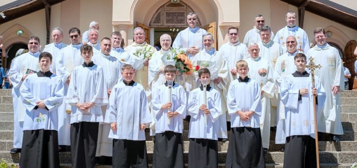14.07.2024, Valea Mare (Catholica) - Sâmbătă, 13 iulie 2024, în biserica „Sfântul Mihai” din Valea Mare, pr. Grigore Duma, fiu al satului, înconjurat de 17 preoți, consăteni și prieteni, a adus laudă Domnului pentru cei 60 de ani de la prima Sfântă Liturghie celebrată în satul natal. A fost o zi de mare sărbătoare pentru întreaga comunitate, credincioșii participanți fiind îmbrăcați în costume tradiționale, fiind în număr mare la Sfânta Liturghie jubiliară.