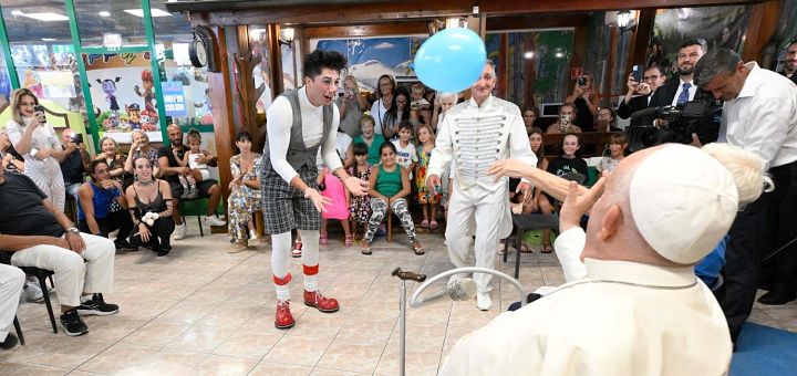 01.08.2024, Vatican (Catholica) - Papa Francisc a luat o pauză de la „vacanța de vară” din luna iulie pentru a-și petrece după-amiaza zilei de miercuri, 31 iulie, vizitând lucrătorii și pe cei care le oferă asistență pastorală într-un parc de distracții istoric aflat la aproximativ o oră sud-vest de Roma. Călătorind la Luna Park din Ostia Lido, Sfântul Părinte le-a transmis urările sale călduroase și sprijinul său, spunând că dorește să își exprime personal recunoștința pentru că ei contribuie la aducerea zâmbetelor pe fețele oamenilor. S-a oprit pentru câteva momente la sosirea sa, făcând semnul crucii, în fața statuii Fecioarei Maria, unde pe o pancartă scria: „Avem nevoie ca Fecioara Maria să fie protectoarea noastră”.