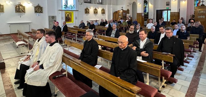 13.09.2024, București (Catholica) - În ziua de miercuri, 12 septembrie a.c., un număr de aproximativ 40 de preoți din București și împrejurimi s-au întâlnit la parohia Sfânta Maria a Harurilor (Bărăția) din capitală, pentru ora de rugăciune lunară și pentru un moment de comuniune sacerdotală, prilejuit de aniversarea a 80 de ani de viață de către pr. Alexandru Cobzaru, preot pensionar colaborator în această parohie.