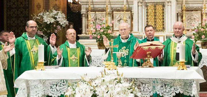 În predica sa, Cardinalul Erdő Péter a îndemnat credincioșii, preoții și Episcopii prezenți să se roage cu stăruință pentru ca Duhul Sfânt să călăuzească lucrările Sinodului de la Roma și să aducă pace între națiunile afectate de conflicte. Eminența Sa i-a mulțumit ÎPS Aurel Percă pentru omilia pe care a ținut-o pe 20 august la Budapesta, în sărbătoarea Sfântului Ștefan, patronul Ungariei, pentru că a accentuat importanța valorilor fundamentale creștine și umane, atât de necesare în toate societățile. „În aceste zile, descoperim împreună cu Episcopii din România că sarcinile noastre pastorale sunt aproape identice, deoarece trăim în aceeași regiune și suntem chemați să promovăm aceleași valori umane și creștine. Reflectând împreună, am descoperit deja că ultimele cuvinte ale Evangheliei de astăzi sunt deosebit de actuale, pentru că Isus spune că trebuie să îl cerem pe Duhul Sfânt – darul Duhului Sfânt, pe care îl cer pentru Biserica din România și cea din Ungaria, ca să putem să ne îndeplinim misiunea pe care Domnul ne-o încredințează”.