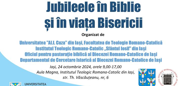 În spiritul acestor simțăminte, care vor trebui să însoțească pașii noștri prin experiențele Anului Jubiliar 2025, Facultatea de Teologie Romano-Catolică din cadrul Universității „Alexandru Ioan Cuza” din Iași, în colaborare cu Institutul Teologic Romano-Catolic „Sfântul Iosif” din Iași, Oficiul pentru Pastorația Biblică al Diecezei Romano-Catolice de Iași și Departamentul de Cercetare Istorică al Diecezei Romano-Catolice de Iași, vă invită să luați parte la simpozionul național Jubileele în Biblie și în viața Bisericii, o incursiune în tradiția de veacuri a Bisericii, eveniment propus în contextul Zilelor Universității „Alexandru Ioan Cuza” din Iași.