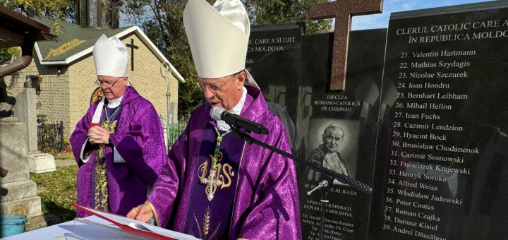 04.11.2024, Chișinău (Catholica) - „Memorial voit de Episcopul Anton Coșa cu susținerea Ambasadei Republicii Polone la Chișinău, cu ocazia împlinirii a 30 de ani de la înființarea primelor structuri centrale ale Bisericii Catolice din Republica Moldova.” Aceasta este inscripția plasată la baza „Altarului Recunoștinței”, pe care Episcopul de Chișinău, PS Anton Coșa l-a dorit ridicat în incinta cimitirului catolic, pentru a-i comemora pe preoții și Episcopii ce au slujit pe teritoriul Moldovei sau care prin diferite moduri au fost legați de acesta.