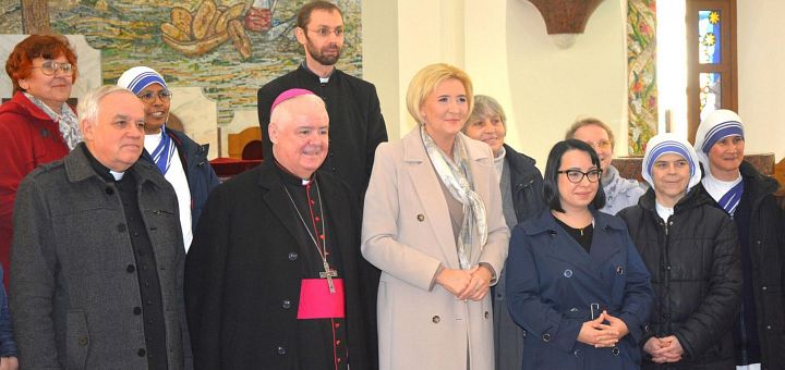 Alături de Episcop, prima doamnă a fost așteptată de preoții Petru Ciobanu și Frant Progrebnoi, precum și de călugărițele care slujesc în Catedrală și de Surorile Maicii Tereza de Calcutta. După salutul inițial și mulțumirile pentru vizită, Episcopul i-a prezentat înaltului oaspete Catedrala și celelalte spații în care au loc Liturghii și a vorbit despre prezența poloneză în viața Bisericii din Moldova.