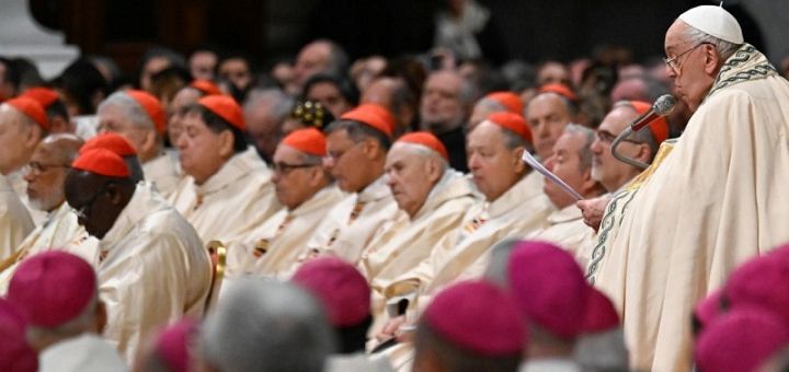 08.12.2024, Vatican (Catholica) - Papa Francisc a celebrat duminică, 8 decembrie 2024, Sfânta Liturghie cu Colegiul Cardinalilor în Bazilica San Pietro, marcând solemnitatea Neprihănitei Zămisliri și încheind o săptămână în care 21 de noi Cardinali au fost incluși în cel mai înalt organism consultativ al Bisericii Catolice. Sute de preoți și Episcopi au participat la celebrare, iar noii Cardinali au concelebrat prima lor slujbă papală după ce și-au primit pălăriile roșii la Consistoriul de sâmbătă, 7 decembrie. Sfânta Liturghie a marcat una dintre cele mai importante sărbători mariane ale Bisericii, celebrând dogma definită oficial de Papa Pius al IX-lea în 1854, conform căreia Preasfânta Fecioară Maria a fost ferită de păcatul originar din momentul conceperii ei.