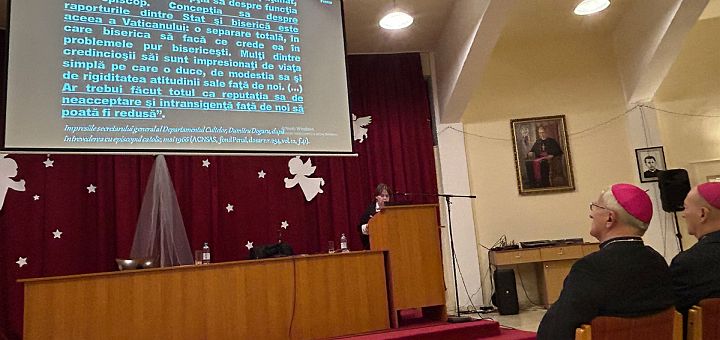 15.12.2024, Iași (Catholica) - Vineri, 13 decembrie 2024, la ora 19, în Aula „Fericitul Anton Durcovici” a Catedralei „Sfânta Fecioară Maria, Regină” din Iași, a avut loc conferința intitulată „Episcopi și preoți romano-catolici în detenție și post detenție. Studiu de caz: Penitenciarul Sighet”, organizată de Centrul Cultural Catolic Iași și de Departamentul de Cercetare Istorică. Invitatul special pentru această conferință a fost dr. Andrea Dobeș, specialist în istorie și muzeograf la Memorialul Victimelor Comunismului și al Rezistenței Sighet. Conferința doamnei Dobeș a abordat o temă fundamentală pentru înțelegerea istoriei Bisericii Catolice din România. Este vorba de perioada ce începe cu anul 1948, în care regimul comunist instaurat în România pornește o virulentă campanie anticatolică.