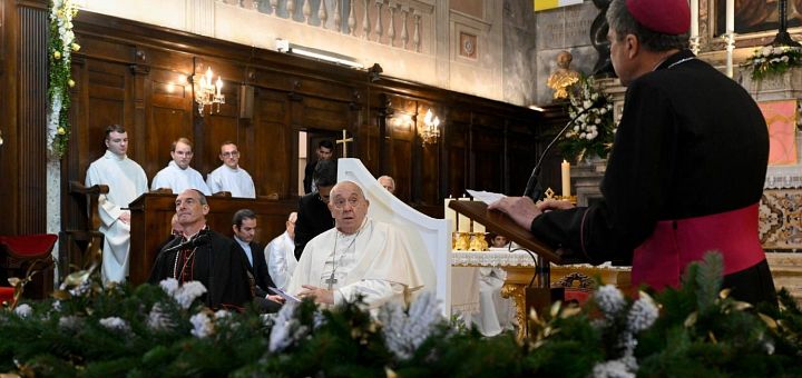 15.12.2024, Ajaccio (Catholica) - Episcopii, preoții, diaconii, persoanele consacrate și seminariștii din Corsica s-au adunat duminică, 15 ianuarie, în Catedrala Adormirea Maicii Domnului din Corsica pentru a se alătura Papei Francisc în recitarea rugăciunii Angelus. Adresându-se celor prezenți în cadrul celui de-al doilea eveniment al călătoriei sale apostolice de o zi pe insula franceză, Papa Francisc le-a mulțumit celor prezenți pentru eforturile depuse zilnic, chiar și în mijlocul provocărilor.