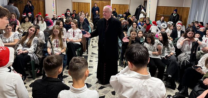 28.12.2024, Chișinău (Catholica) - Tradiția întâmpinării copiilor în ziua de după sărbătoarea Nașterii Domnului nu a lipsit nici în acest an. Aproximativ 100 de copii de diferite vârste au umplut sala reședinței episcopale din Chișinău și au transformat o încăpere mică într-un minunat spațiu de bucurie și prietenie. Copiii au venit de la centrele de plasament ale salezienilor și Fundației „Regina Pacis”, din familiile comunității Căii Neocatecumenale, de la fundațiile „Concordia” și de la „Casa Providenței”. Fiecare grup l-a colindat pe Episcopul Anton Coșa, care a avut pentru ei cuvinte simple, pline de afecțiune.