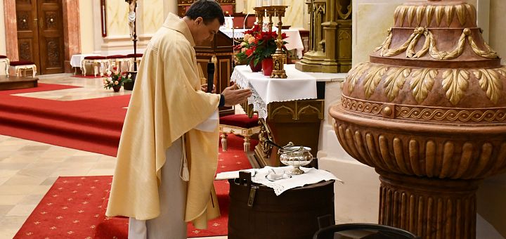 08.01.2025, Timișoara (Catholica) - Solemnitatea Botezului Domnului (Epifania), sărbătorită în data de 6 ianuarie în întreaga Biserică Catolică, amintește atât de vizita celor trei crai sau magi la Pruncul Isus, cât și de Botezul lui Cristos în apa Iordanului. Din acest motiv preoții, în cadrul Sfintei Liturghii celebrate în această zi, oficiază ritualul Sfințirii Apei (acum putând fi binecuvântate și tămâia și creta, care se utilizează la binecuvântarea caselor). Din această apă sfințită credincioșii pot lua cu ei și pentru acasă. Totodată, această solemnitate marchează sfârșitul sărbătorilor dedicate Nașterii Mântuitorului nostru Isus Cristos. În Domul Sf. Gheorghe, Catedrala romano-catolică din Timișoara, luni, 6 ianuarie 2025, înainte de masă celebrantul principal al Sfintei Liturghii a fost pr. canonic Nikola Lauš, directorul Cancelariei Episcopale.
