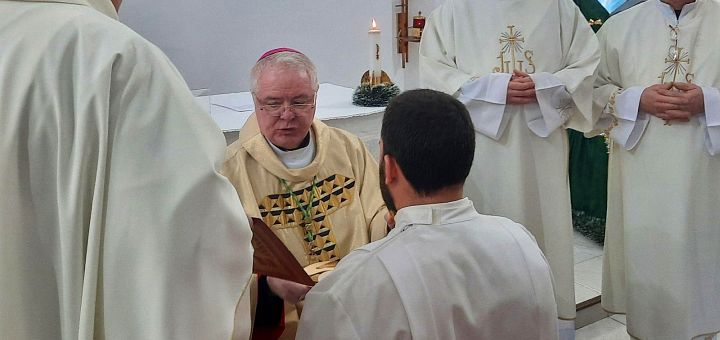 09.01.2025, Chișinău (Catholica) - Dieceza de Chișinău are un nou acolit instituit, în persoana lui Thomas Boyle, care a primit acest minister duminică, 5 ianuarie, în parohia „Sfântul Alois Scrosoppi” din Chișinău. La începutul Liturghiei, Episcopul Anton Coșa a amintit că „după ce anul trecut Thomas a primit slujirea de lector, anul acesta o va primi pe cea de acolit, făcând astfel încă un pas important spre diaconatul permanent și devenind slujitor extraordinar al Sfintei Euharistii”.