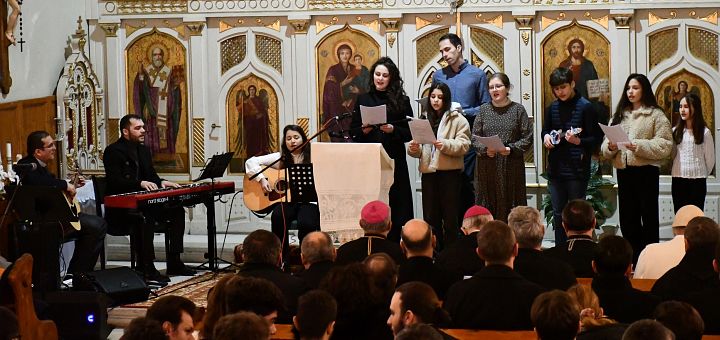 24.01.2025, Timișoara (Catholica) - La invitația pr. Răzvan Oprișa, vicar foraneu și protopop greco-catolic de Timișoara, miercuri, 22 ianuarie a.c. în biserica greco-catolică Timișoara I – Nașterea Maicii Domnului, tineri aparținând de șase confesiuni și comunități creștine din orașul nostru s-au întâlnit și s-au rugat împreună pentru unitate. Alături de tinerii și preoții sosiți din comunitățile greco-catolice, romano-catolice, ortodoxe, evanghelice-luterane și penticostale, a fost prezentă și o tânără reprezentantă a Comunității Evreiești din Timișoara. Organizată în cadrul Octavei de Rugăciune pentru Unitatea Creștinilor, și această întâlnire a fost condusă de motto-ul: „Crezi tu aceasta?” (In 11,26). La seara de rugăciune ecumenică au participat Excelența Sa Ioan Călin Bot, Episcop greco-catolic de Lugoj, Excelența Sa Iosif Csaba Pál, Episcop romano-catolic de Timișoara, pr. dr. Zaharia Pereș, protopop ortodox român al Timișoarei, pastorul evanghelic-luteran Zsombor Kovács, rabinul Zvika Kfir, mai mulți preoți ai comunităților creștine din oraș. Din partea Episcopiei Romano-Catolice de Timișoara a mai fost prezent pr. Zsolt Szilvágyi, vicar pastoral, și pr. Daniel Dumitru, paroh de Timișoara II Fabric, responsabil diecezan pentru pastorația tineretului.