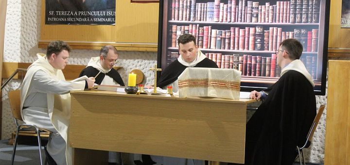 Evenimentul a fost precedat de celebrarea Sfintei Liturghii prezidată de PS Petru Gherghel, care a îndemnat studenții seminariști să contemple moștenirea lăsată de Sfântul Toma, un titan al credinței noastre, și să urmeze modelul acestuia. La predică, pr. Ștefan Socaciu a evidențiat valoarea unei vieți de sacrificiu, făcând referință la momentele de suferință prin care a trecut Sfântul Toma, momente care l-au întărit și care l-au învățat înțelepciunea. În acest sens, părintele a oferit și un exemplu descriind ceea ce avea Sfântul Toma pe masă, și anume un crucifix: „Din acel crucifix extrăgea toată înțelepciunea”.