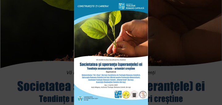 19.02.2025, Iași (Catholica) - Ediția a XIII-a a Zilei Sociale pentru Studenți (ZSS) va avea loc sâmbătă, 1 martie 2025, la Institutul Teologic Romano-Catolic „Sfântul Iosif” din Iași. Tema propusă pentru această ediție este: „Societatea și speranța (speranțele) ei. Tendințe neomarxiste – orientări creștine”. ZSS este organizată de Facultatea de Teologie Romano-Catolică din Iași (www.ftrc.uaic.ro), Episcopia Romano-Catolică de Iași (www.ercis.ro), prin Oficiul pentru Pastorația Universitară (www.opuis.ro), Institutul Teologic Romano-Catolic „Sfântul Iosif” din Iași (www.itrciasi.ro) și Asociația Studenților Catolici din Iași.