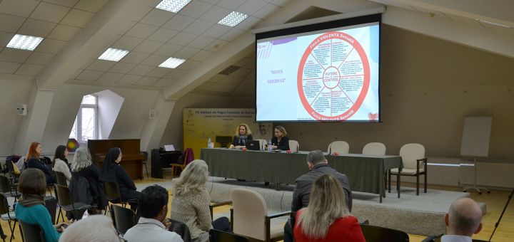 În ultima parte, sr. Inocenția, coordonatoarea proiectului Solwodi, ne-a prezentat câteva mărturii ale persoanelor cu care a lucrat și a subliniat că situațiile de violență domestică nu țin cont de nivelul de studii sau de religie, căci situații de acest gen întâlnim uneori și în familii catolice. Violența domestică este un subiect asupra căruia trebuie să ne aplecăm fiecare dintre noi, deoarece efectele acesteia sunt traumatizante asupra victimei. Astăzi, mai mult ca oricând, trebuie să învățăm să ne respectăm unul pe celălalt, fără a pune stăpânire pe viața partenerului sau a unei persoane apropiate. (Marius Cocuț-Forminte pentru ARCB.ro)