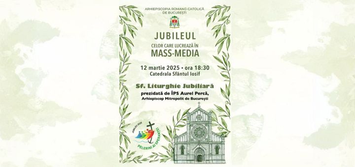07.03.2025, București (Catholica) - Cu ocazia Anului Jubiliar 2025, proclamat de Sfântul Părinte Papa Francisc, Arhiepiscopia Romano-Catolică de București (ARCB) organizează un eveniment dedicat jurnaliștilor și profesioniștilor în comunicare: „Jurnaliștii, naratori ai Speranței”, miercuri, 12 martie 2025, începând cu ora 16:00, în Aula Magna a Facultății de Teologie Romano-Catolică (Strada General Berthelot nr. 19). Pe lângă prezentarea dimensiunilor Anului Jubiliar și a inițiativelor specifice pentru Arhidieceza Romano-Catolică de București, cei prezenți vor analiza provocările și misiunea de a comunica speranța într-o lume marcată de conflicte și polarizare.