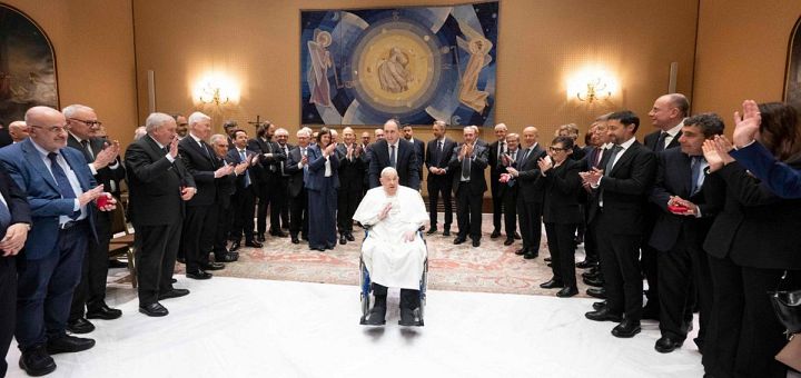 17.04.2025, Vatican (Catholica) - Aproximativ 70 de persoane, printre care conducerea și personalul Policlinicii Gemelli, al Universității Catolice și al Direcției de Sănătate și Igienă din Vatican, au fost primite în miercuri dimineață, timp de aproximativ 20 de minute, de Papa Francisc în încăperile din spatele Aulei Paul al VI-lea. Suveranul Pontif le-a mulțumit pentru îngrijirea și asistența primite și i-a asigurat de rugăciunile sale, apoi a glumit cu Elena Beccalli, rectorul Universității: „Atunci când comandă femeile, lucrurile merg!”