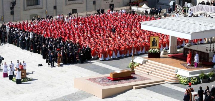 26.04.2025, Vatican (Catholica) - Peste două sute de mii de oameni din toate categoriile sociale s-au adunat sâmbătă dimineață în Piața San Pietro și în zonele adiacente pentru a-și lua rămas bun de la Papa Francisc, în cadrul Liturghiei funerare. Celebrarea solemnă și emoționantă a fost prezidată de Cardinalul Giovanni Battista Re, alături de aproximativ 250 de Cardinali, Patriarhi, Arhiepiscopi, Episcopi, preoți și persoane consacrate.