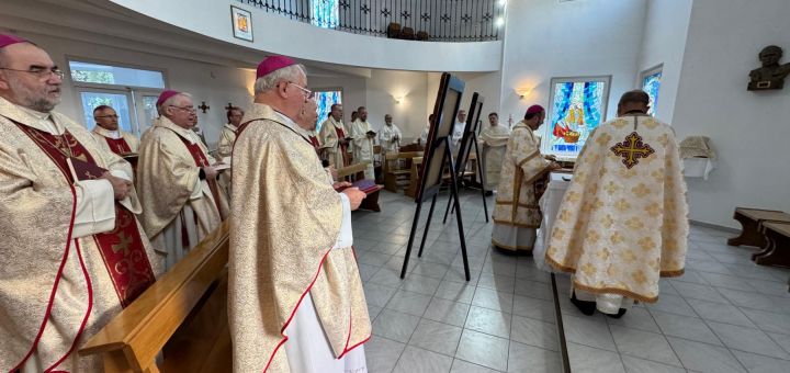 22.05.2025, Chișinău (Catholica) - A doua zi a reuniunii Conferinței Episcopilor din România a fost deschisă cu o Liturghie celebrată în rit oriental, în biserica „Sfântul Alois Scrosoppi” din Chișinău. Liturghia a fost prezidată de PS Claudiu Lucian Pop, Episcop al Eparhiei de Cluj-Gherla, concelebrând cu alți Episcopi și preoți de rit oriental, cu prezența și a Episcopilor și preoților de rit latin. Biserica parohială a fost pregătită pentru celebrarea în rit oriental, grație și experienței și colaborării pr. Igor Plevschi, preot greco-catolic care activează în Dieceza de Chișinău, și surorilor guanelliene, printre care și o soră de rit greco-catolic.